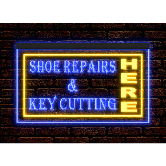 DC190013 Shoes Repairs Key Cutting Store Shop Open Home Decor Display illuminated Night Light Neon Sign Dual Color