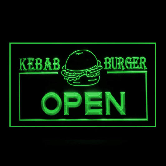 110059 OPEN Kebab Burger Fast Food Shop Cafe Home Decor Open Display illuminated Night Light Neon Sign 16 Color By Remote