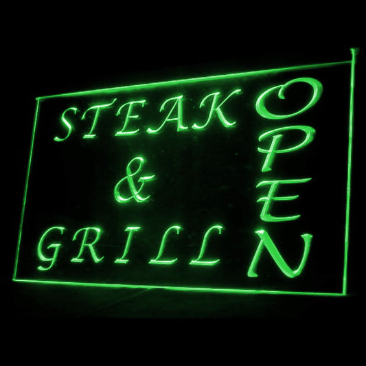 110061 OPEN Steak Grills Bar Cafe Home Decor Open Display illuminated Night Light Neon Sign 16 Color By Remote