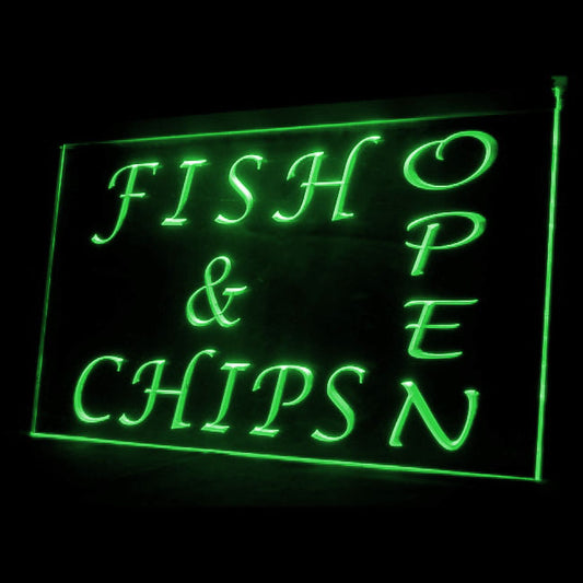 110062 OPEN Fish Chips Cafe Restaurant Bar Home Decor Open Display illuminated Night Light Neon Sign 16 Color By Remote