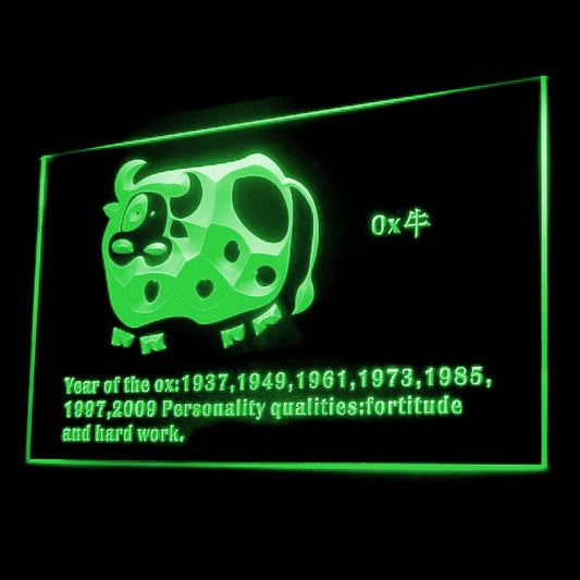 150003 Chinese Zodiac Cow Ox Fortune Home Decor Open Display illuminated Night Light Neon Sign 16 Color By Remote