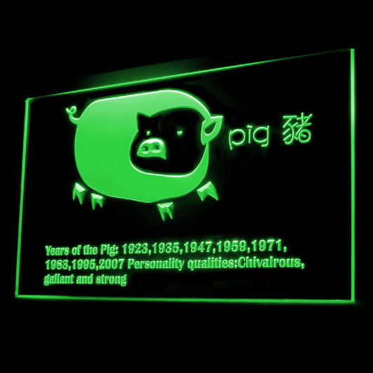 150009 Chinese Zodiac Pig Tai Chi Home Decor Open Display illuminated Night Light Neon Sign 16 Color By Remote