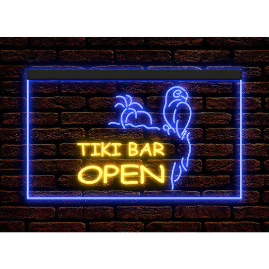 DC170022 Tiki Bar Open Parrot Pub Home Decor Beer Display illuminated Night Light Neon Sign Dual Color