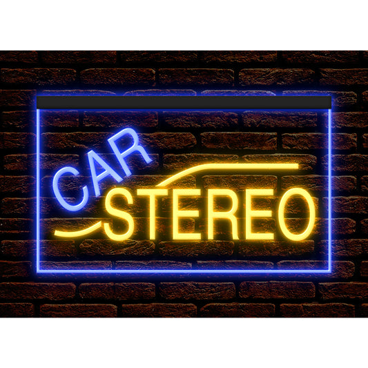 DC140013 Car Stereo Audio Sound Auto Shop Open Display illuminated Night Light Neon Sign Dual Color
