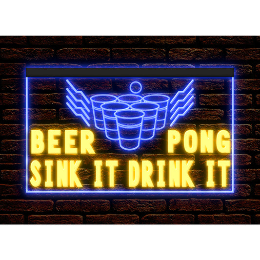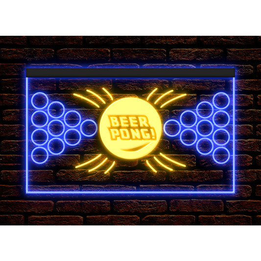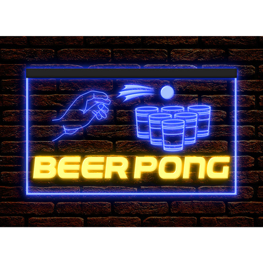 DC170155 Beer Pong Game Bar Happy Hours Home Decor Display illuminated Night Light Neon Sign Dual Color