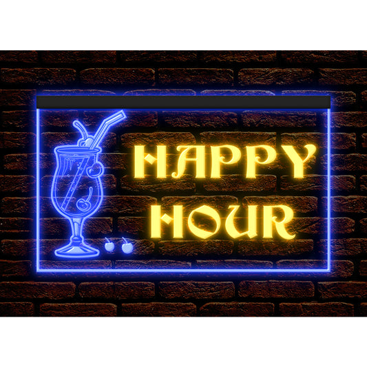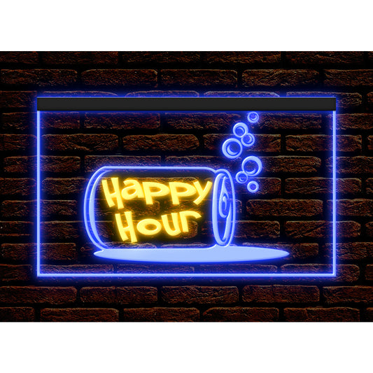 DC170159 Happy Hour Bar Home Decor Open Display illuminated Night Light Neon Sign Dual Color
