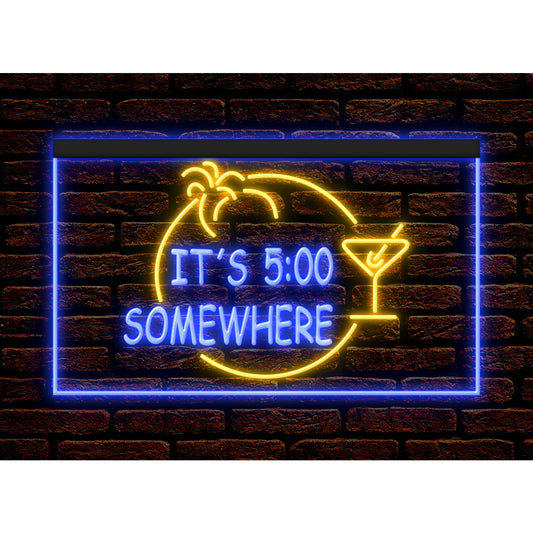 DC170005 ITS 5:00 Somewhere Open Bar Pub Decor Display illuminated Night Light Neon Sign Dual Color