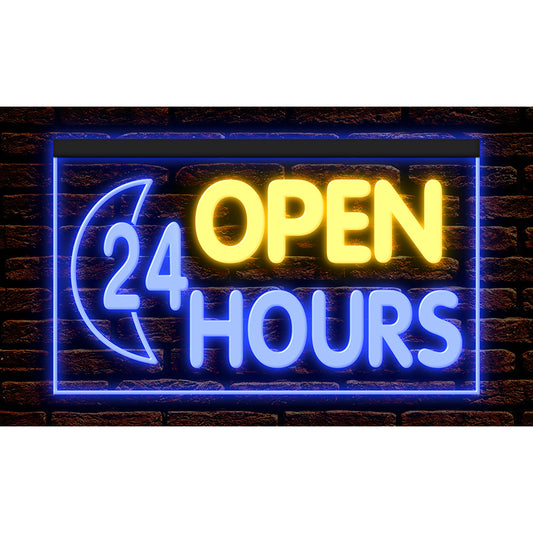 DC120014 OPEN 24 HOURS Shop Store Salon Cafe Home Decor Display illuminated Night Light Neon Sign Dual Color