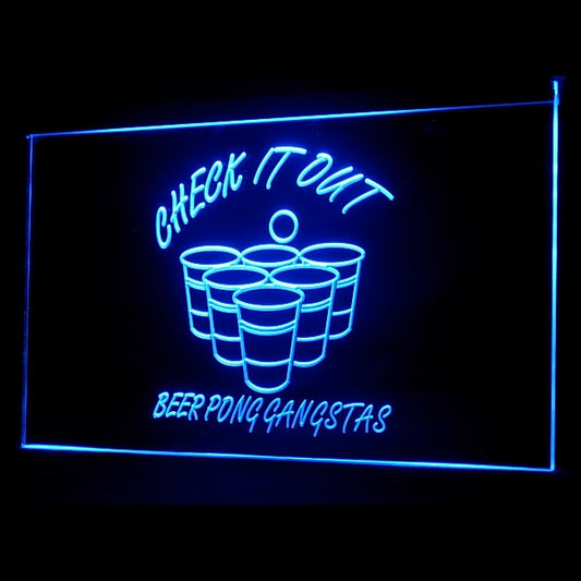 170133 Beer Pong Game Bar Happy Hours Home Decor Open Display illuminated Night Light Neon Sign 16 Color By Remote