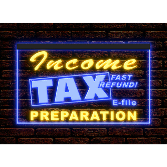 DC190176 Income Tax Preparation Office Shop Open Home Decor Display illuminated Night Light Neon Sign Dual Color