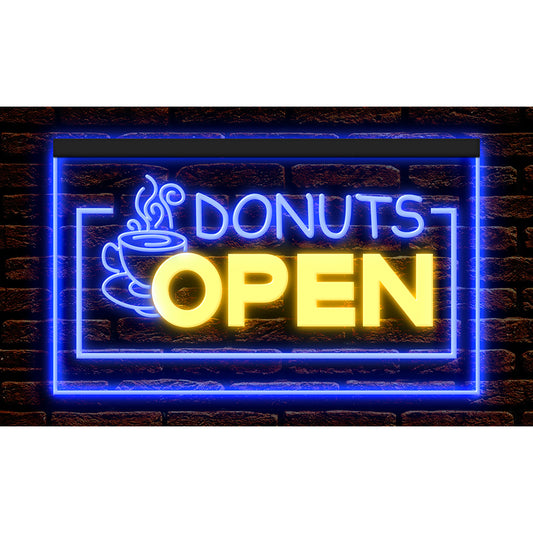 DC110028 Donuts Bakery Shop Coffee Cafe Open Home Decor Display illuminated Night Light Neon Sign Dual Color