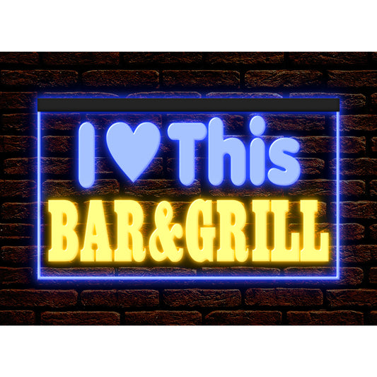 DC170226 I love This Bar Grill Restaurant Open Display illuminated Night Light Neon Sign Dual Color