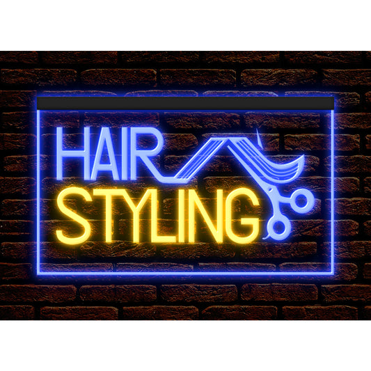 DC160050 Hair Styling Shop Beauty Salon Open Home Decor Display illuminated Night Light Neon Sign Dual Color