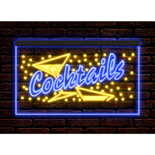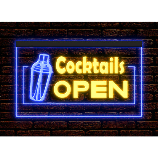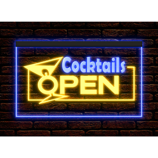 DC170012 Cocktails Open Bar Pub Club Home Decor Display illuminated Night Light Neon Sign Dual Color