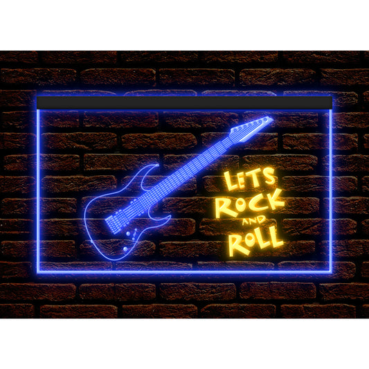 DC140075 Guitar Let's Rock n Roll Music Live Show Display illuminated Night Light Neon Sign Dual Color