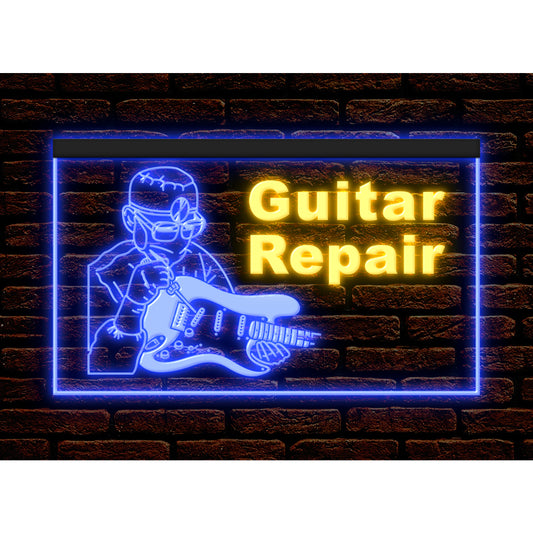 DC140090 Guitar Repair Music Shop Store Ope Display illuminated Night Light Neon Sign Dual Color