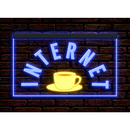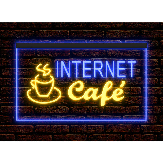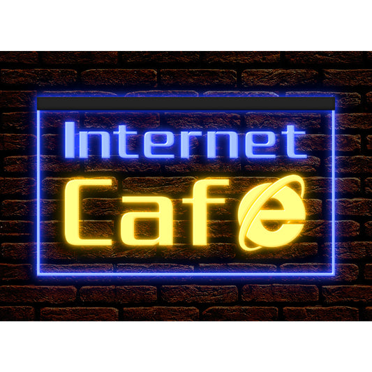 DC130005 OPEN Internet Cafe 24 Hours Bar Home Decor Display illuminated Night Light Neon Sign Dual Color