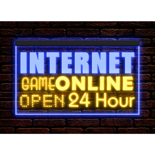 DC130053 OPEN Internet Cafe 24 Hours Bar Home Decor Display illuminated Night Light Neon Sign Dual Color