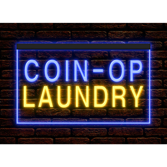 DC120041 Coin Op Laundry Shop Open Home Decor Display illuminated Night Light Neon Sign Dual Color