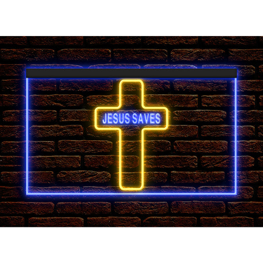 DC150001 Jesus Saves Religion Crosses Shop Store Home Decor Display illuminated Night Light Neon Sign Dual Color