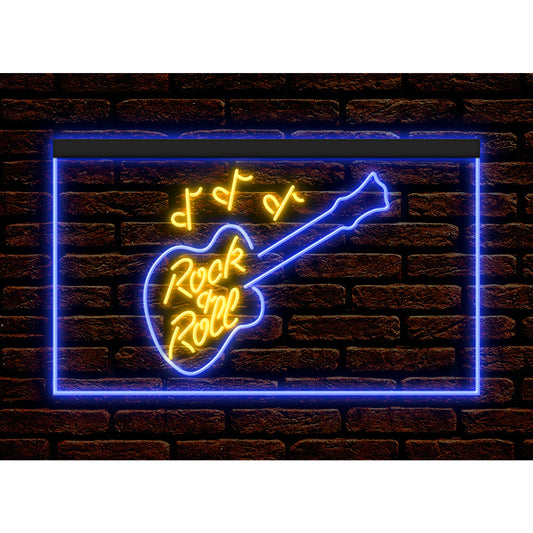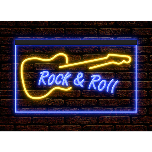 DC140009 Rock and Roll Guitar Music Band Room Live Display illuminated Night Light Neon Sign Dual Color