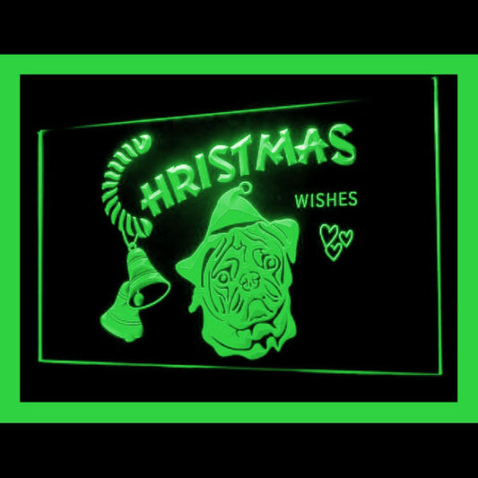 150056 Pug Dog Christmas Pets Shop Home Decor Open Display illuminated Night Light Neon Sign 16 Color By Remote