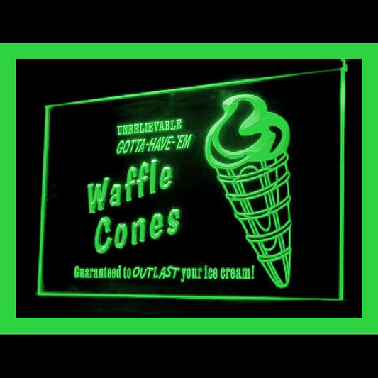 110197 Waffle Cones Ice Cream Shop Cafe Home Decor Open Display illuminated Night Light Neon Sign 16 Color By Remote